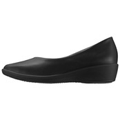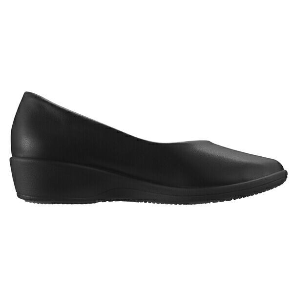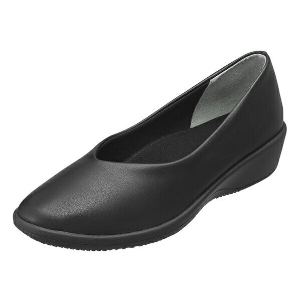 Vカットデザインでスッキリとした足元を演出。伸縮性のあるストレッチ合皮が足に優しくフィットする軽量オフィスパンプス。