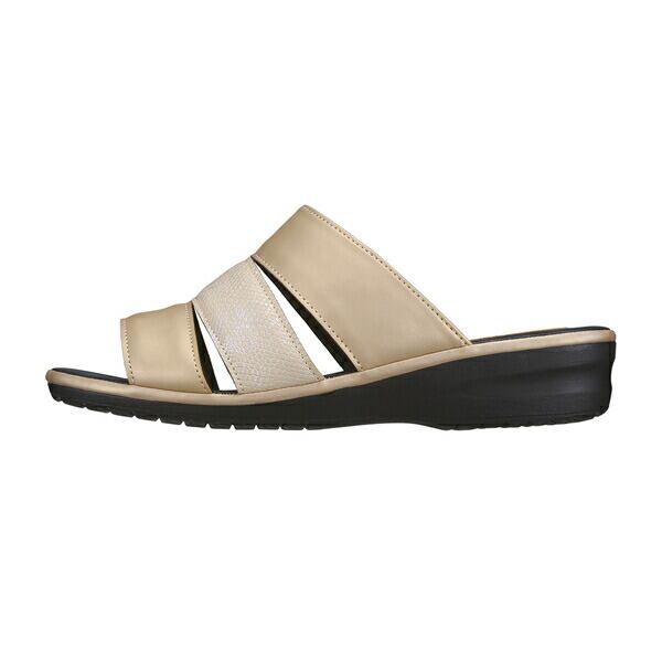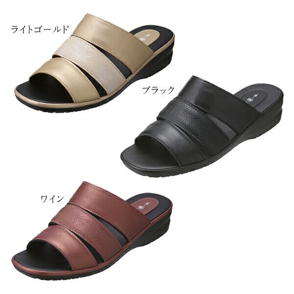 異素材ミックスのアッパーがオシャレなサンダル。3本ベルトが甲をしっかりと覆うため安定感があり歩きやすい設計。屈曲性が良く、包み込まれるような履き心地です。