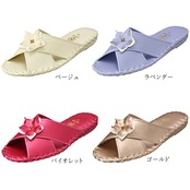 ワンポイントの花飾りがオシャレな定番室内履き。クロスバンドの履きやすいデザインは足入れがしやすく歩きやすいので大人気です。