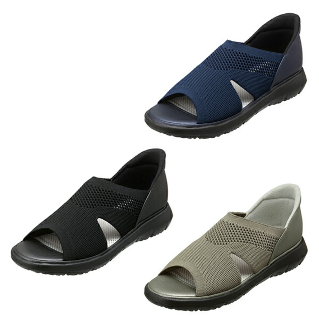 ソフトで通気性の良いニット素材を使用した爽やかシューズ。かかと付きだから安定感があって歩きやすい♪