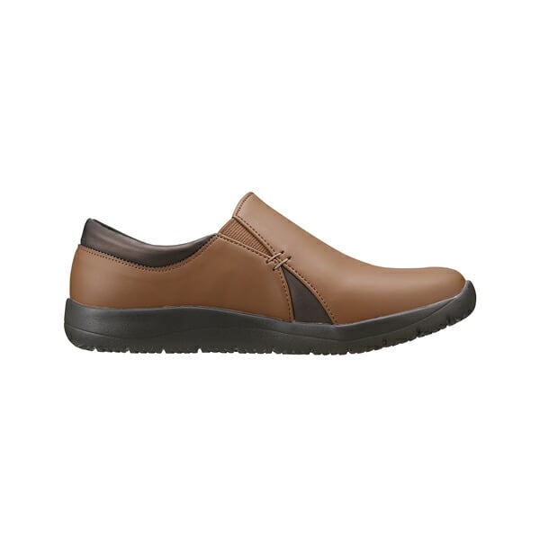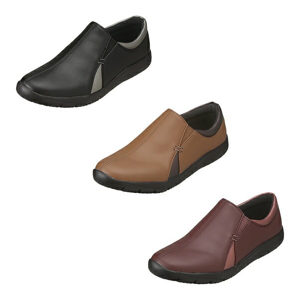 サイドの切り替えデザインがお洒落なスリッポンシューズ。ソフトなインソールとかえりの良い軽量ソールが歩行をサポート。長時間のお出かけでも足元快適!