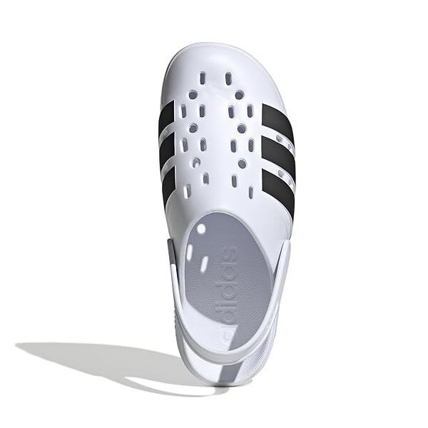アディレッタ クロッグ 2.0は、リラックスタイムに欠かせないadidasサンダルの最新版。クラシックなアディレッタのシルエットを進化させた一足。かかとに着脱可能なストラップを備え、クロッグとしても履ける2WAY仕様になっている。アッパーとサイドに施されたホールが通気性を確保。シューレースを通してアレンジすることもできる。3D成型のデザインが、屈曲性とクッション性、そして安定感を提供する。