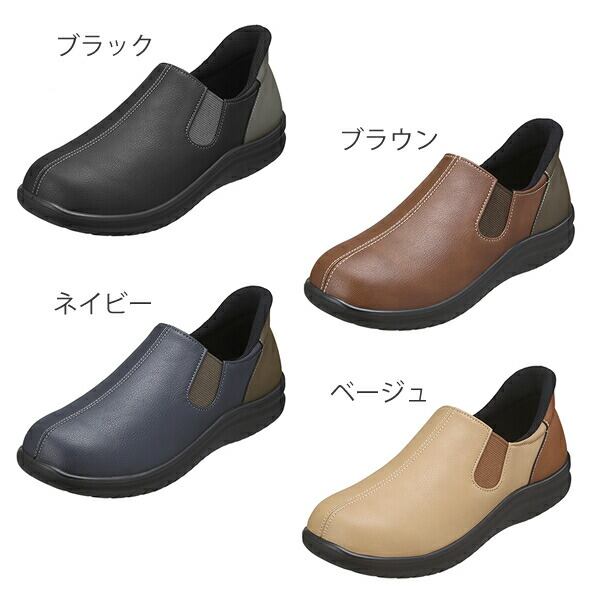 脱ぎ履き簡単!4E設計でゆったり履けるカジュアルシューズ。使いやすいデザインに踵部分のバイカラーが魅力的。ソフトでフレキシブルな歩き心地で、長時間の使用でも疲れにくいです。