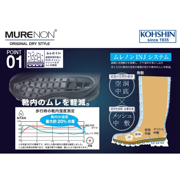 完全防水 メンズ 長靴 作業用 農作業 雨靴 ムレノン ST-01 履きやすい 透湿 PVC 弘進ゴム 先芯入り 安全ブーツ