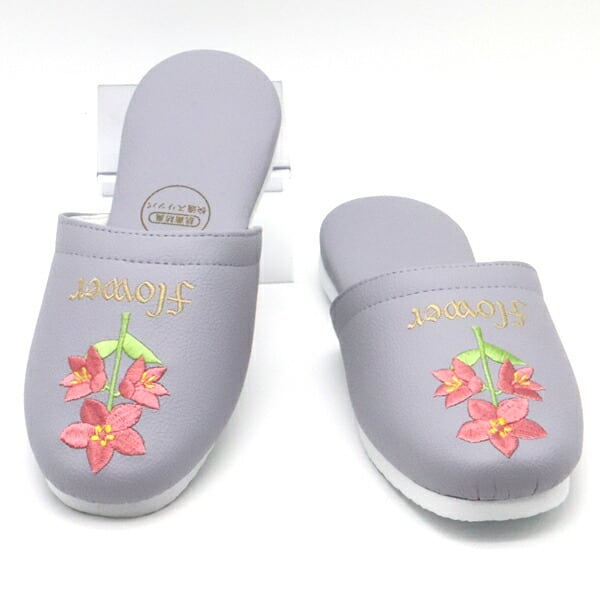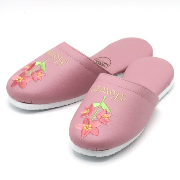 上品な花柄の甲部分は合成皮革を使用して汚れがつきにくく拭き取りやすい。