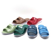 シンプルなデザインでありながら、足にフィットして履きやすく、バンド(適度に軟らかいソリッドゴム)と底のスポンジが非常に丈夫なこと、 などが人気の理由。色・サイズが豊富で、学校用上履きの定番商品となっています。