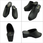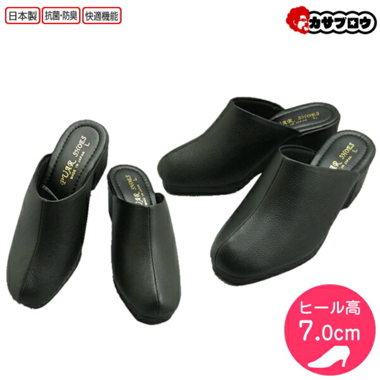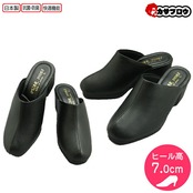 【当日出荷】 オフィスサンダル レディース ヒール 日本製 PUAR SHOESI 婦人 女性用 7cm BLACK 黒 ブラック 美脚 軽量 ウェッジソール 歩きやすい ヨシオカ おすすめ | 長靴・サンダルのカサブロウ